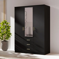 Szafa Adel 150 cm czarna elegancki design klasyczna forma szafy z lustrem do sypialni lub garderoby pojemne szuflady złote uchwyty