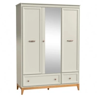 Szafa z lustrem Windsor 136 cm beżowy / dąb elegancka i funkcjonalna szafa do sypialni osadzona na stabilnej drewnianej podstawie