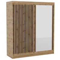 Szafa przesuwna z lustrem Delia 180 cm dąb artisan / czarny stylowa szafa z lamelami w kolorze drewna wpasuje się do każdej aranżacji