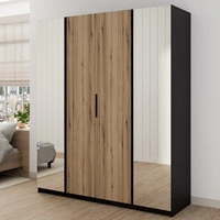 Szafa z lustrem Kastano XIV 200 cm czarny / dąb evoke elegancki design drzwi szafy ozdobione czarnymi lamelami szafa do przedpokoju