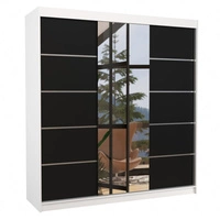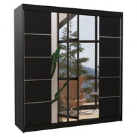 Szafa przesuwna z lustrem Dalmatia 200 cm czarna solidne wykonanie stylowe wykończenie szafy do przedpokoju lub sypialni