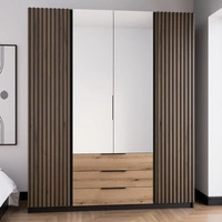 Szafa z lustrem Neri 102 cm dąb artisan / czarny stylowe lamele zdobiące drzwi szafy pojemne szuflady uchwyty krawędziowe