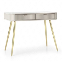 Konsola Luxury beżowa z szufladami stylowa i elegancka toaletka wsparta na wysokich nogach korpus zwieńczony złotą listwą
