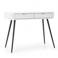 Konsola Zoya biała z szufladami stylowa oraz funkcjonalna toaletka zaoblony kształt bryły ryflowane fronty szuflad metalowe nogi
