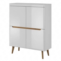 Komoda wysoka Atka 107 cm biała / biały połysk / dąb riviera nowoczesny design mebla obrzeża komody wykończone specjalną okleiną ABS