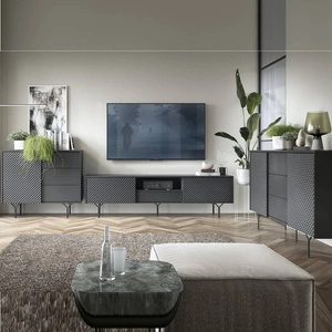 Zestaw mebli Adamant czarny grafit nowoczesny design system otwierania drzwi i szuflad push to open designerskie frezowane fronty
