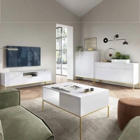 Zestaw mebli Lovro biały nowoczesny design meblościanka wzbogacona złotymi metalowymi dodatkami meble do salonu lub pokoju dziennego