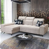 Narożnik z funkcją spania Arbon beżowy lewostronny nowoczesne wzornictwo narożnika o charakterystycznym kształcie miękka tkanina