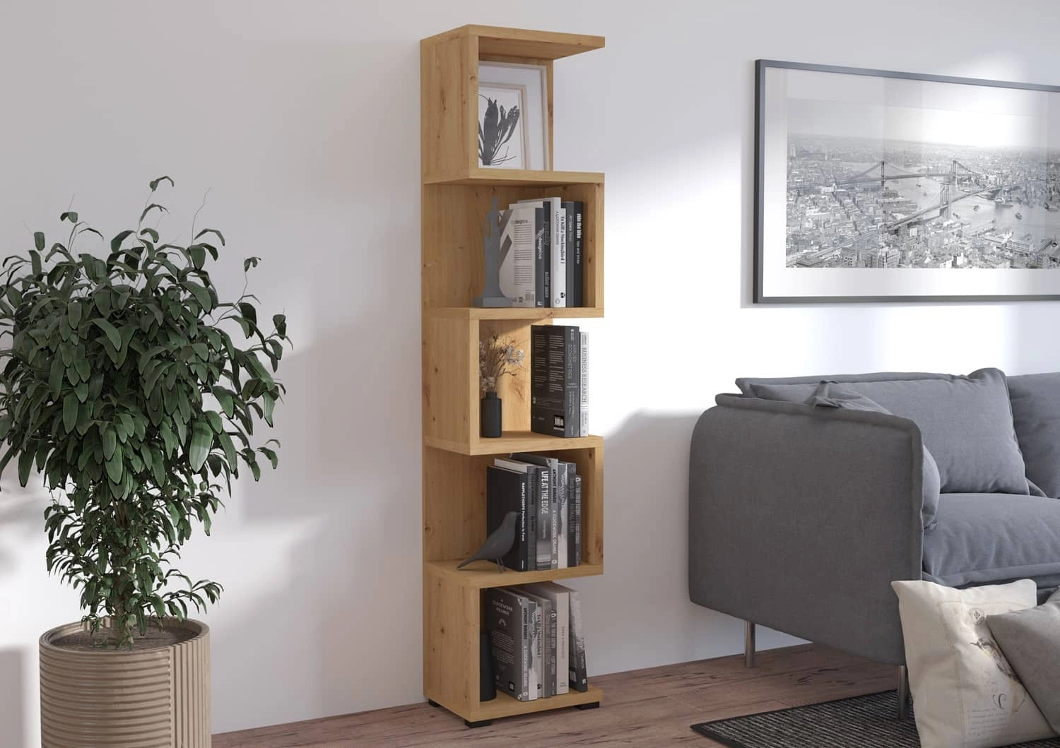 Regał Even 42 cm dąb artisan idealny regał do biura gabinetu lub pokoju nastolatka