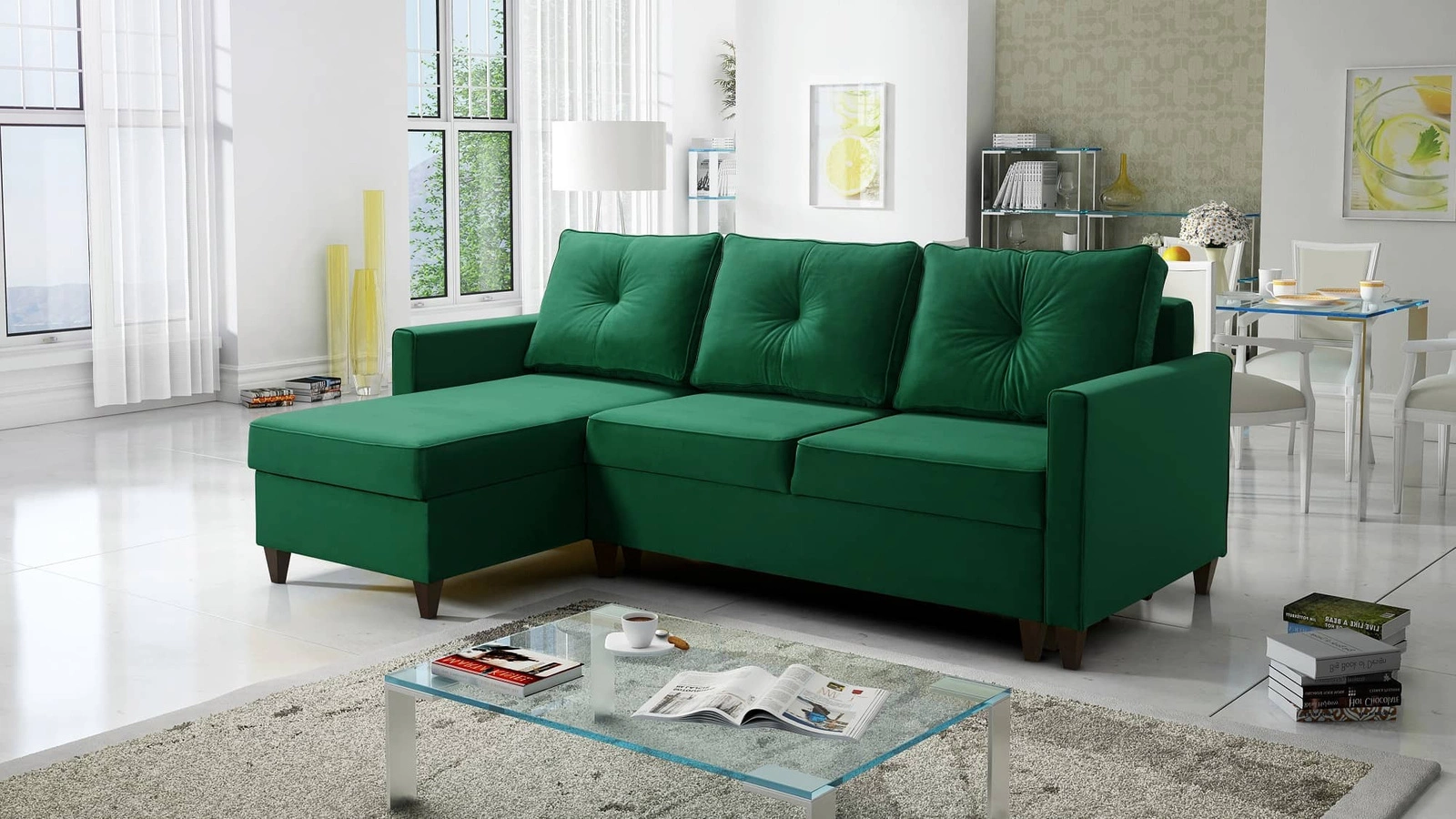 Narożnik z funkcją spania Terni to propozycja wysoce praktycznego i funkcjonalnego mebla charakteryzującego się minimalizmem w skandynawskim stylu. Narożnik gwarantuje najwyższy komfort podczas codziennego wypoczynku w salonie, sypialni, pokoju dziennym, pokoju gościnnym czy innym pomieszczeniu, w którym planujesz ustawić ten niezwykle modny i nowoczesny narożnik! Konstrukcja narożnika w całości pokryta została tkaniną typu velvet Amor Velvet 4311.
