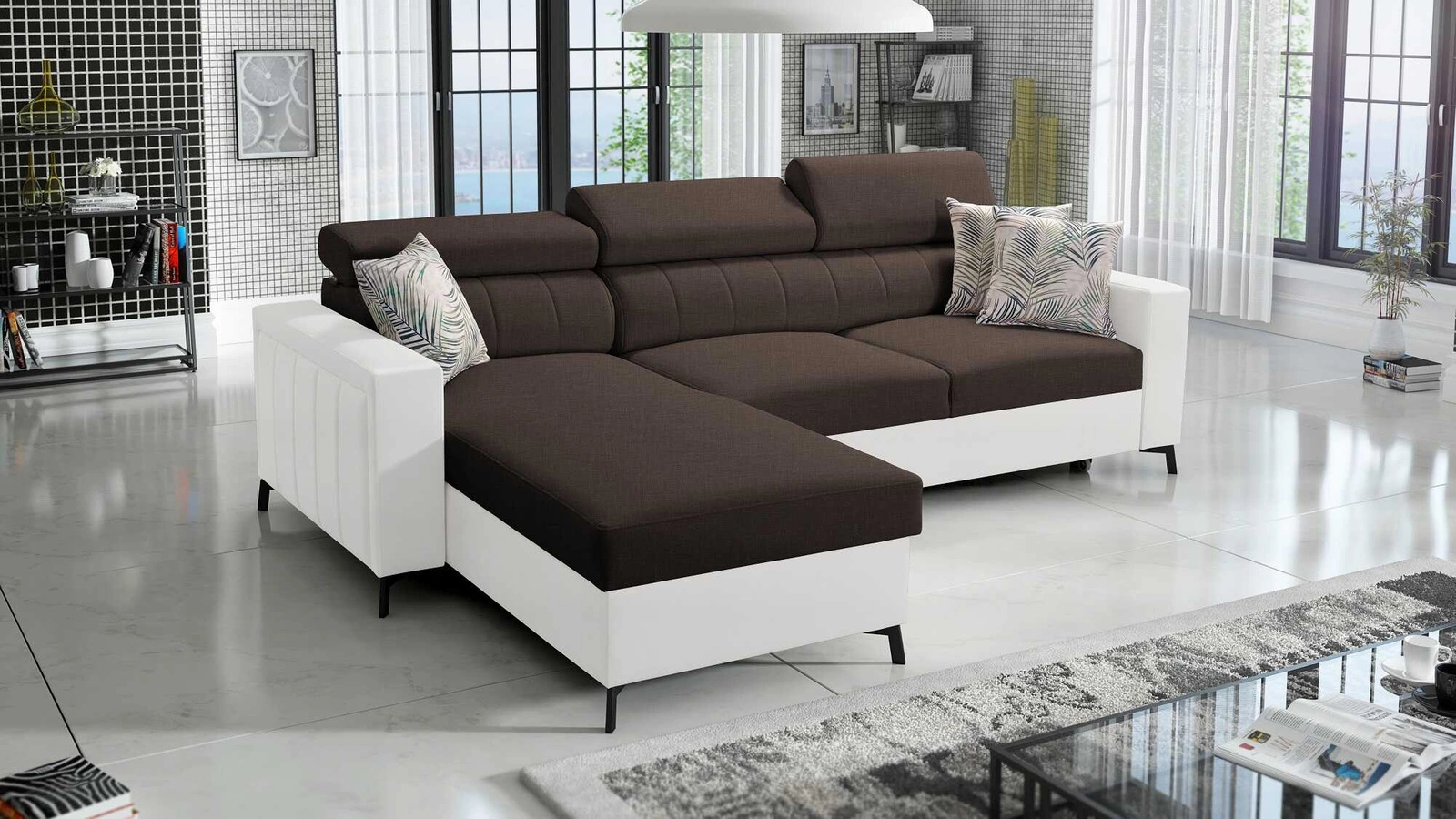 Narożnik Savona w kolorze brązowy / biały z regulowanymi zagłówkami to elegancki mebel, który dopasuje się do każdej aranżacji.