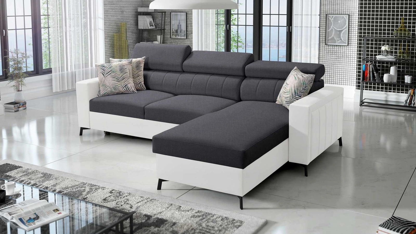 Narożnik Savona w kolorze grafitowy / biały z regulowanymi zagłówkami to elegancki mebel, który dopasuje się do każdej aranżacji.
