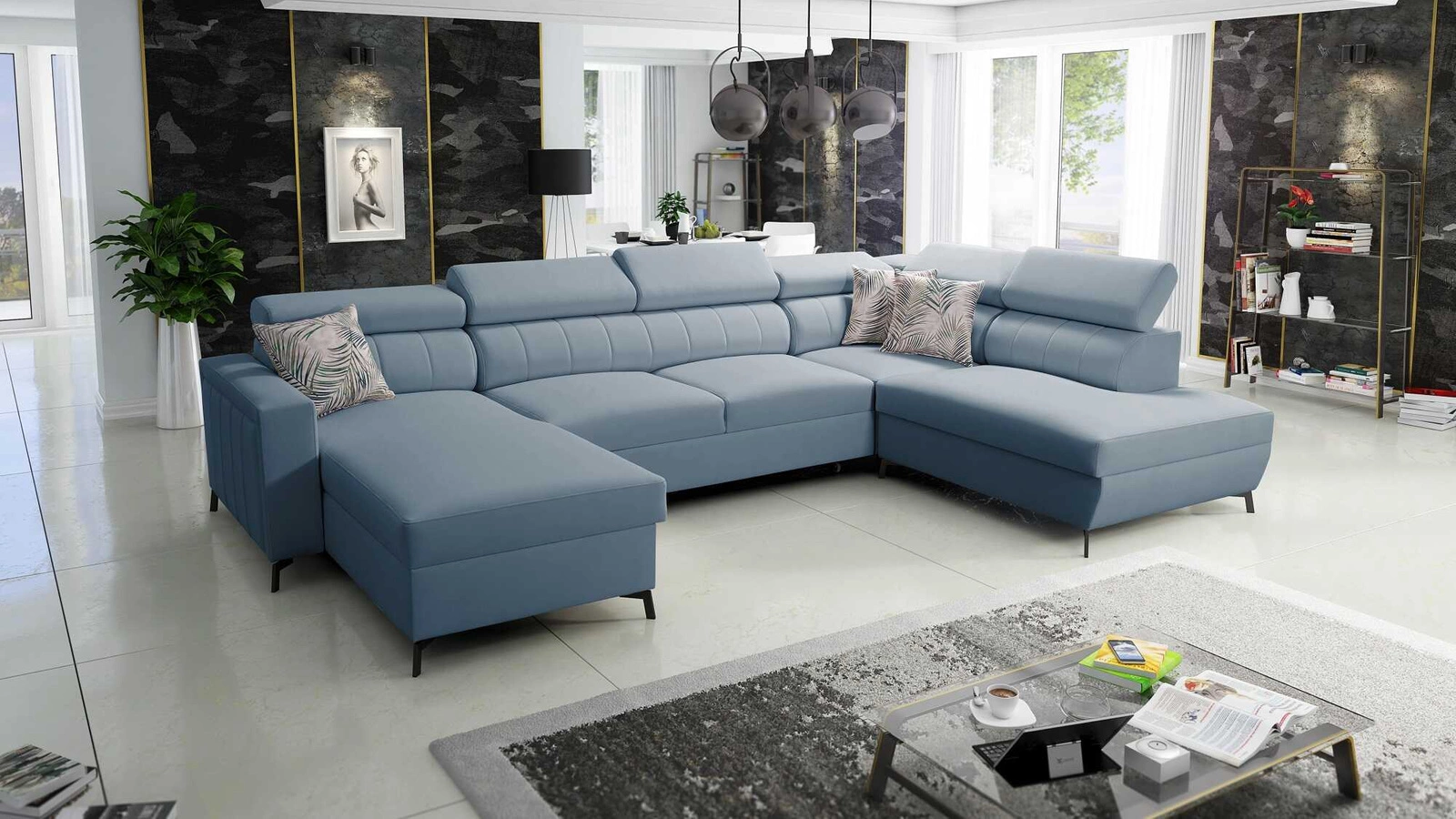 Narożnik Savona VI w kolorze błękitnym z regulowanymi zagłówkami to połączenie funkcjonalności z niezwykle elegancką formą.
