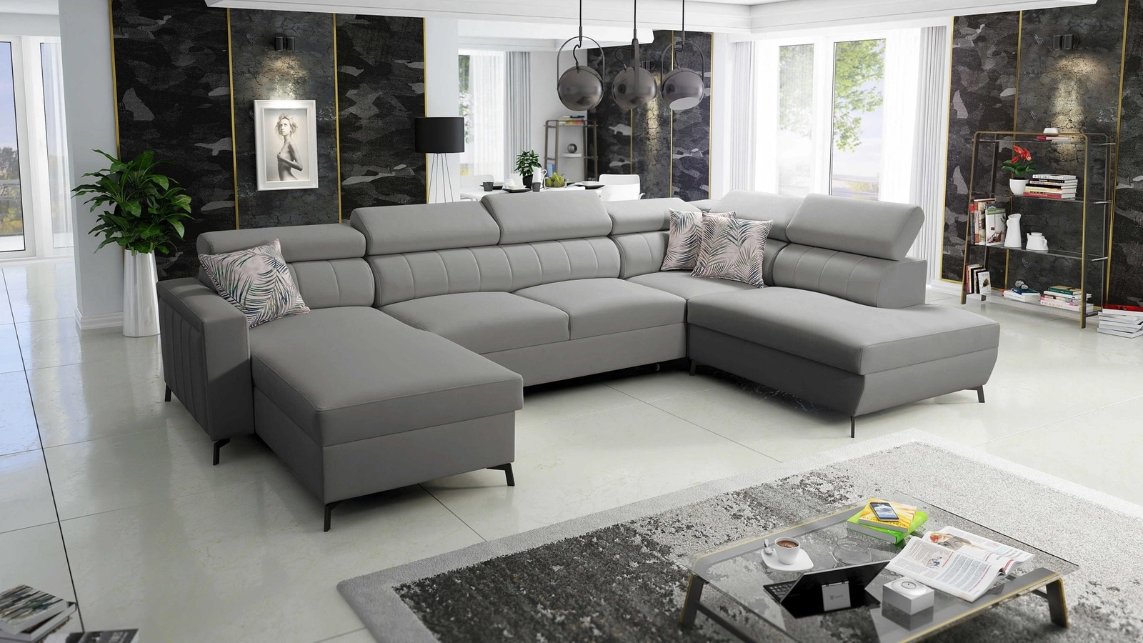 Narożnik Savona VI w kolorze szarym z regulowanymi zagłówkami to połączenie funkcjonalności z niezwykle elegancką formą.