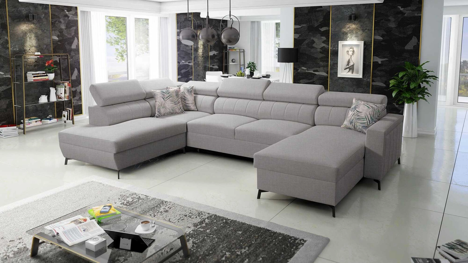 Narożnik Savona VI w kolorze jasny szary z regulowanymi zagłówkami to połączenie funkcjonalności z niezwykle elegancką formą.