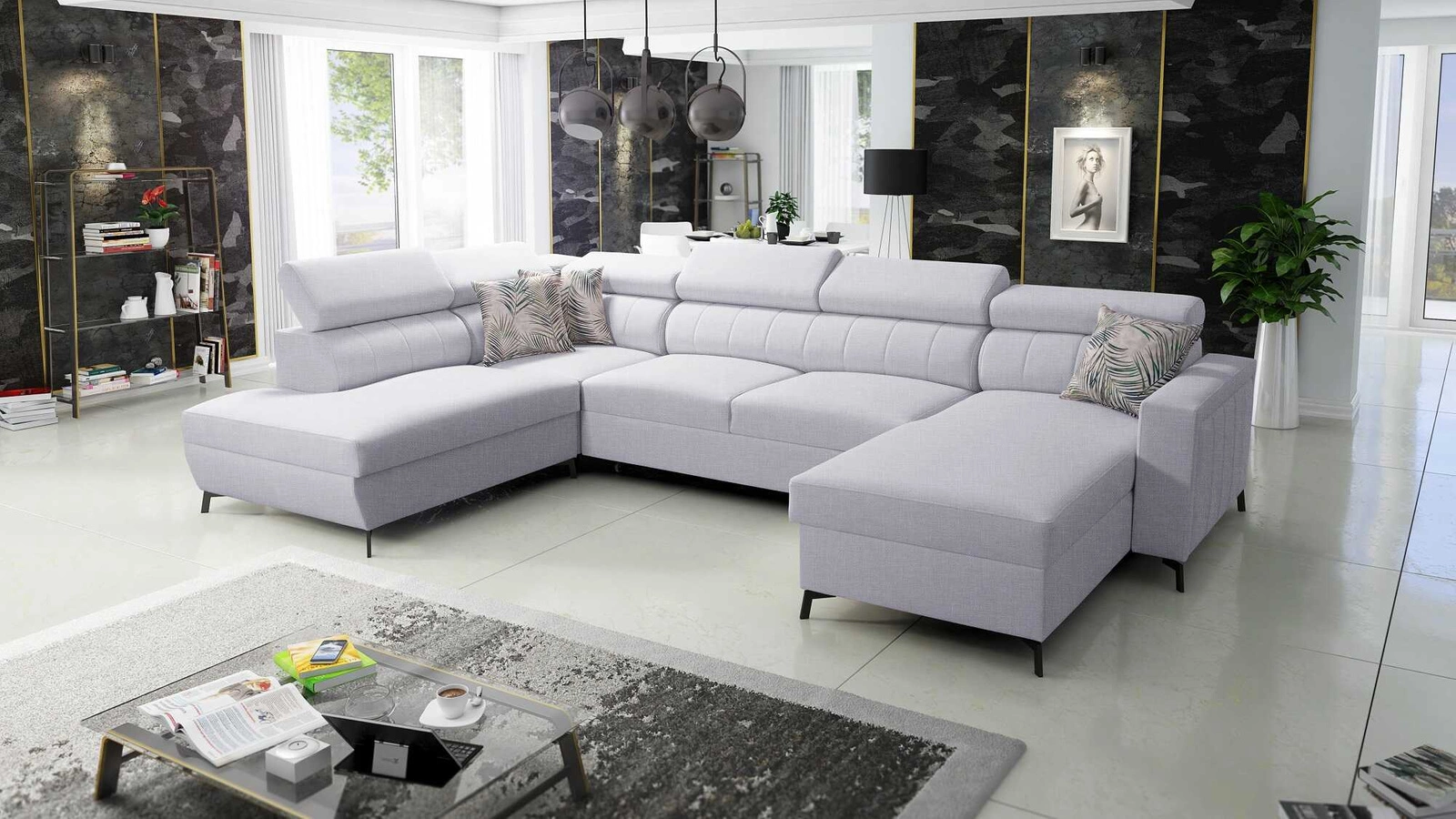 Narożnik Savona VI w kolorze szary popiel z regulowanymi zagłówkami to połączenie funkcjonalności z niezwykle elegancką formą.