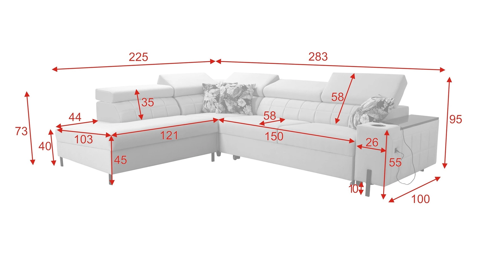 Wymiary narożnika z funkcją spania