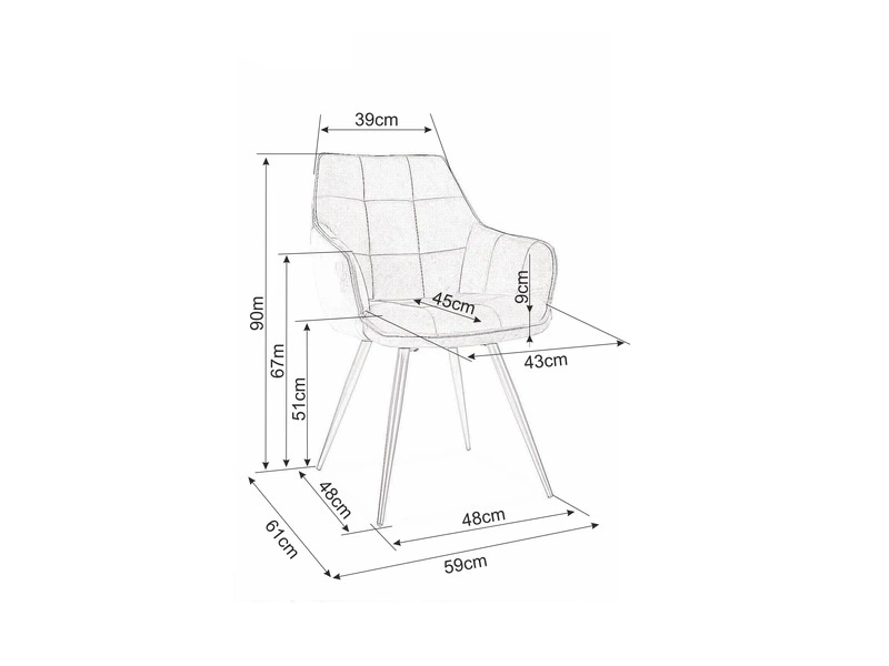 Dla zwiększenia komfortu krzesło posiada wygodne oparcie o wysokości 39 cm oraz miękkie podłokietniki, które zapewnią wygodę podczas siedzenia. Dzięki dekoracyjnemu pikowaniu krzesło zyskało niepowtarzalnego charakteru.