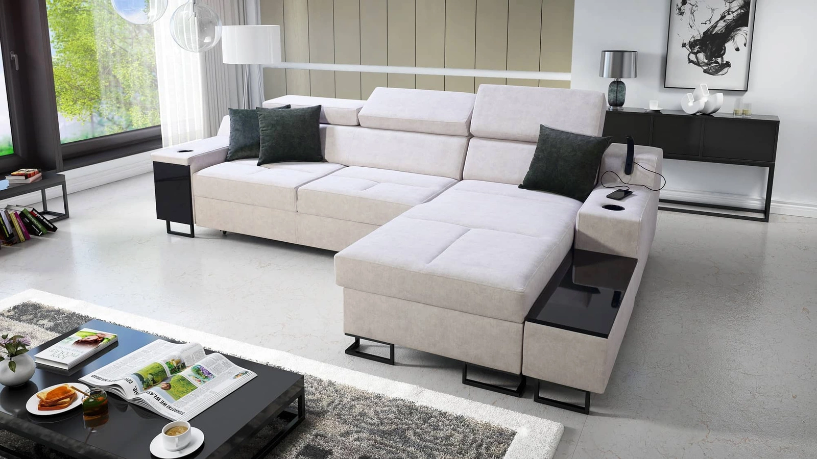 Szczegóły nowoczesnego narożnika z funkcją spania Alcamo