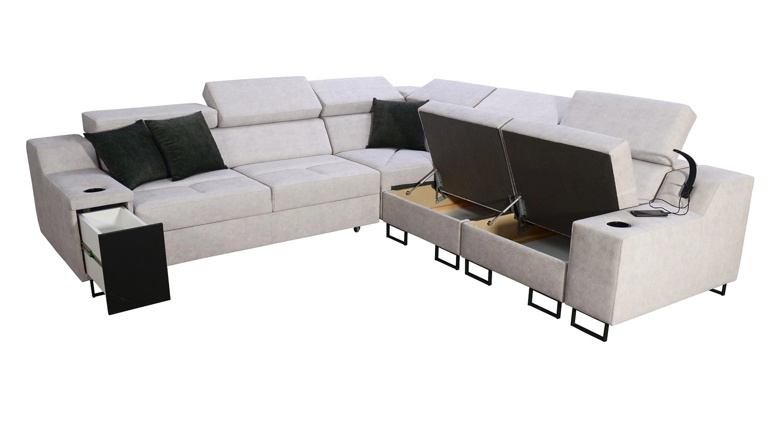 Narożnik z pojemnikiem na pościel Alcamo III Narożnik do salonu Narożnik rozkładany do pokoju dziennego