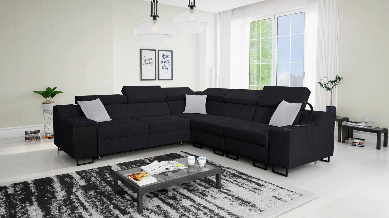 Narożnik Alcamo III w kolorze czarnym z regulowanymi zagłówkami to elegancki mebel, który dopasuje się do każdej aranżacji.