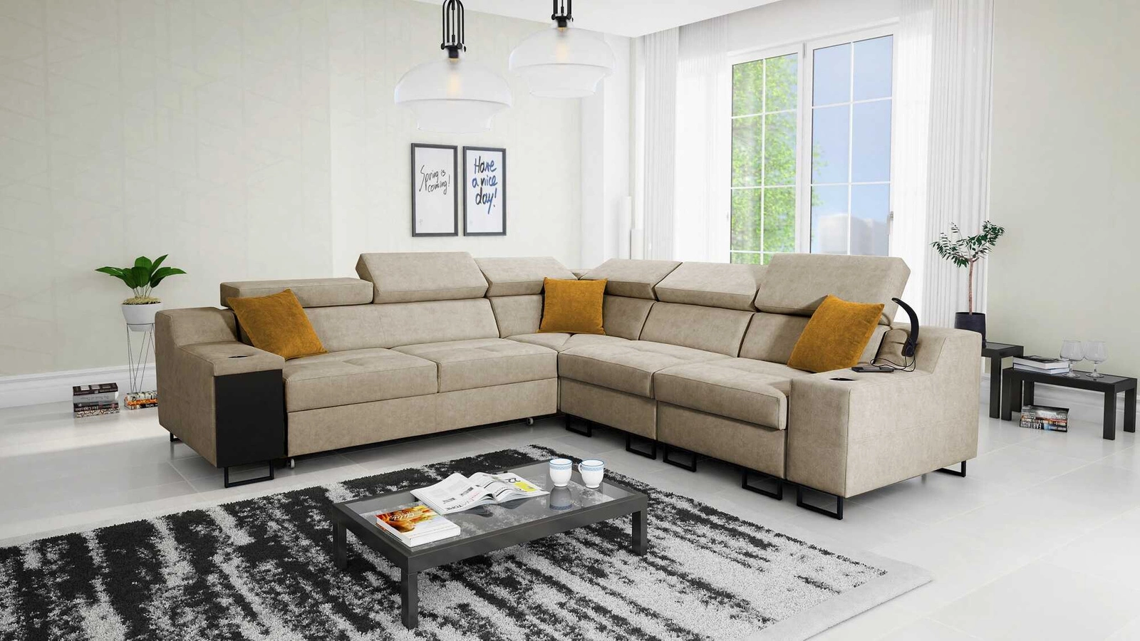 Narożnik Alcamo III w kolorze beżowym z regulowanymi zagłówkami to elegancki mebel, który dopasuje się do każdej aranżacji.