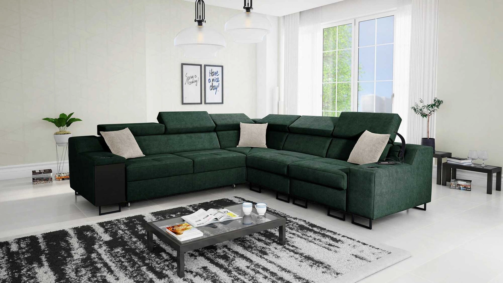 Narożnik Alcamo III w kolorze zielonym z regulowanymi zagłówkami to elegancki mebel, który dopasuje się do każdej aranżacji.