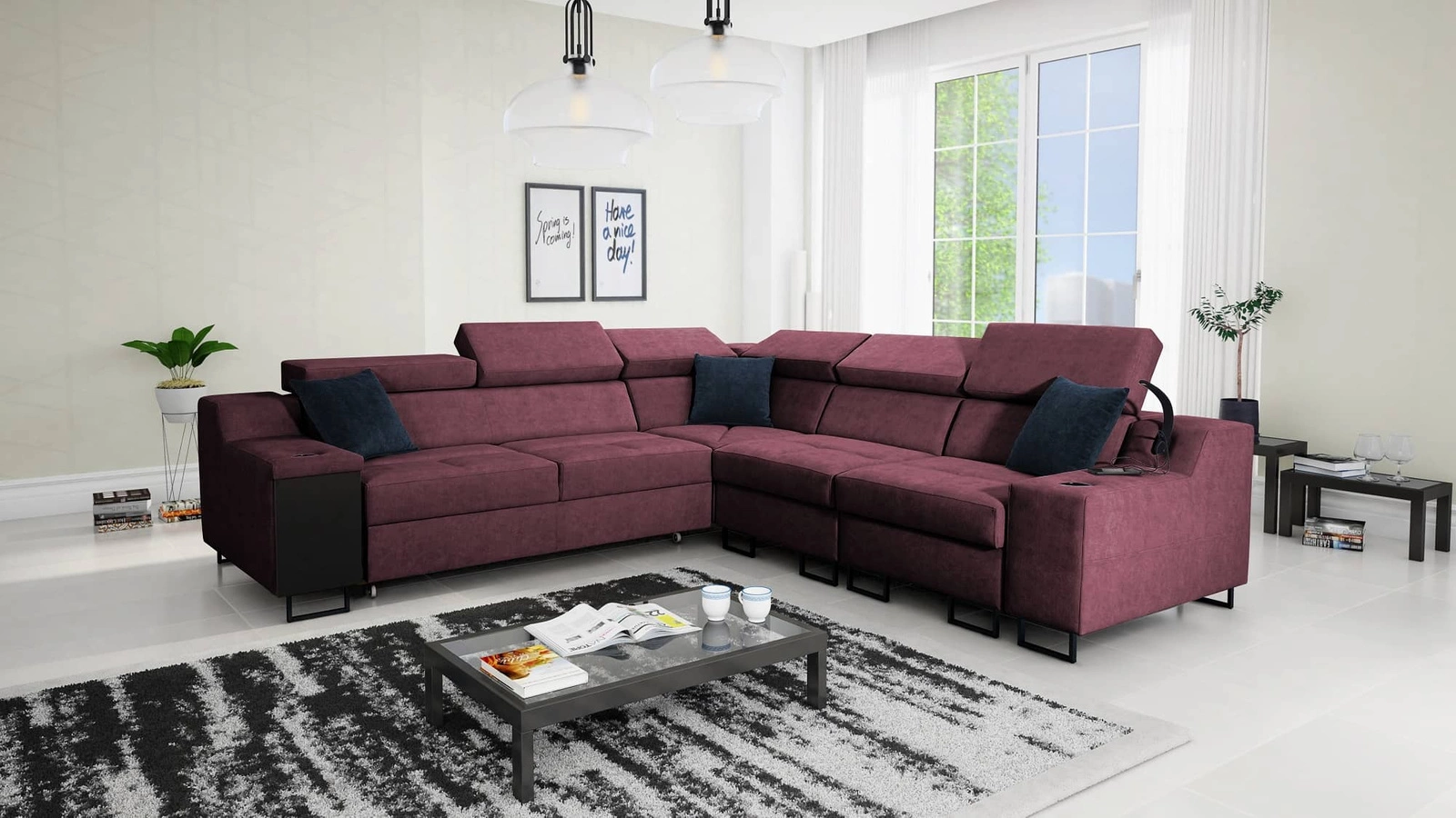 Narożnik Alcamo III w kolorze burgundowym z regulowanymi zagłówkami to elegancki mebel, który dopasuje się do każdej aranżacji.