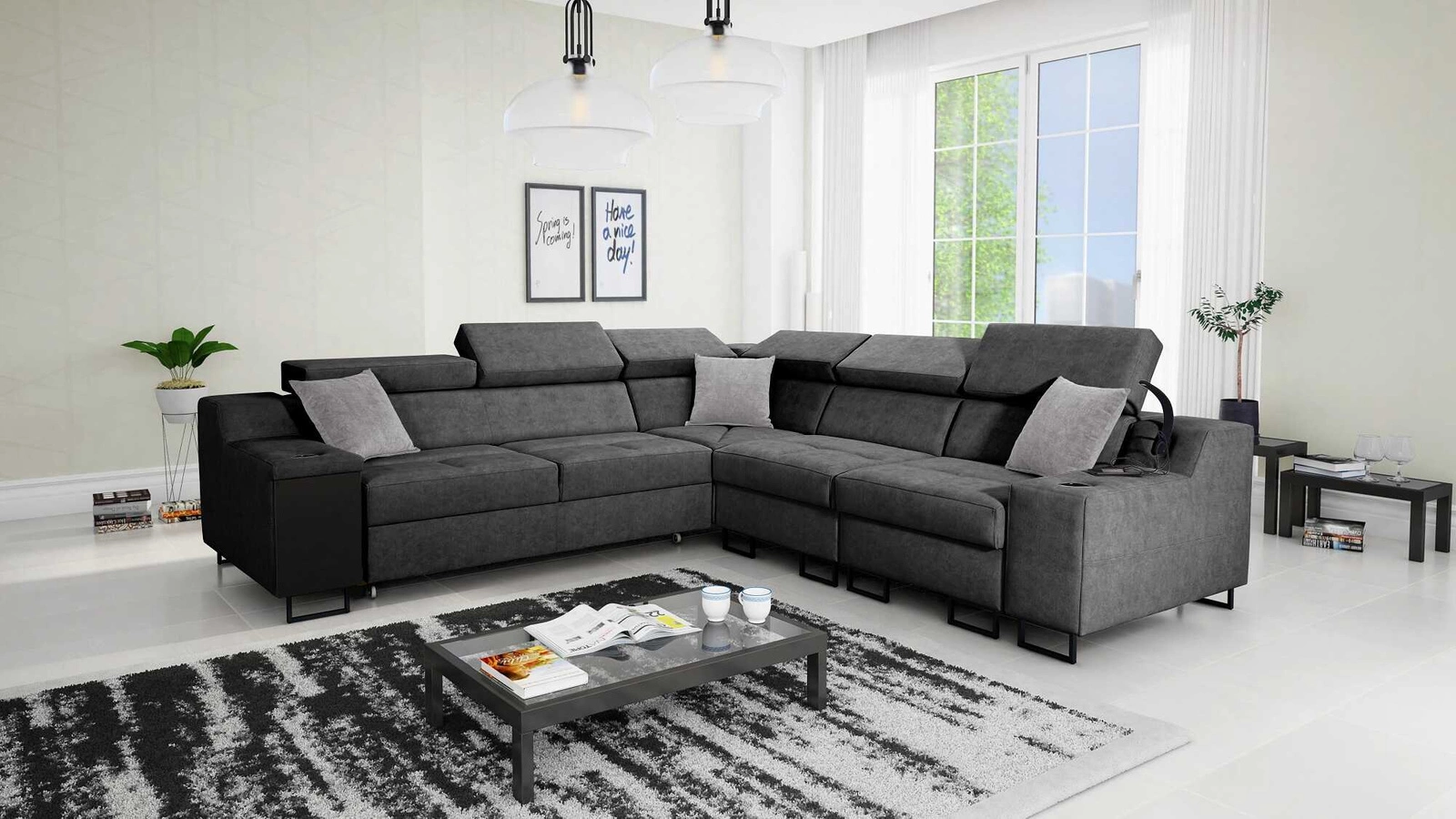 Narożnik Alcamo III w kolorze szarym z regulowanymi zagłówkami to elegancki mebel, który dopasuje się do każdej aranżacji.