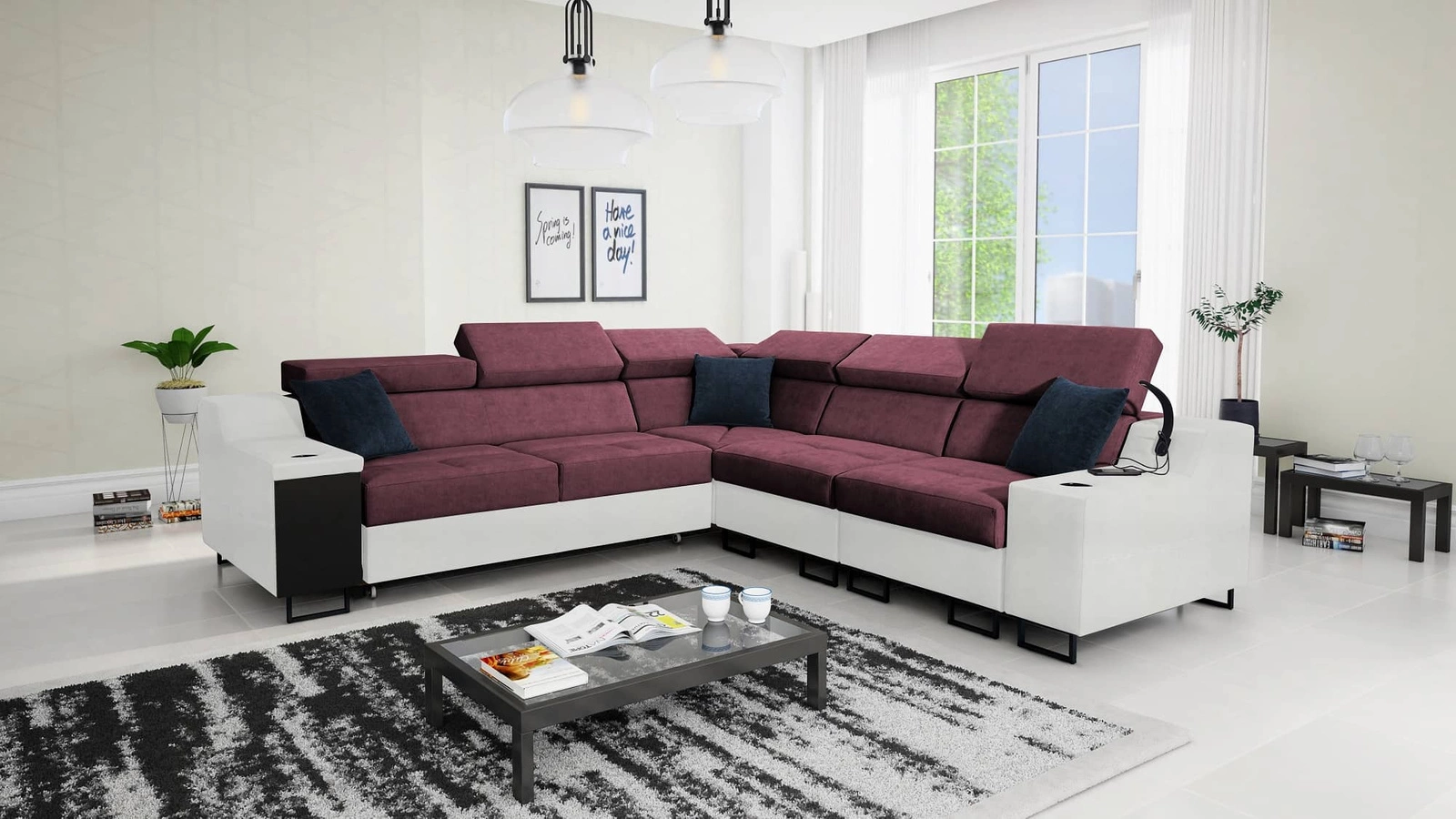 Narożnik Alcamo III w kolorze burgundowy / biały z regulowanymi zagłówkami to elegancki mebel, który dopasuje się do każdej aranżacji.
