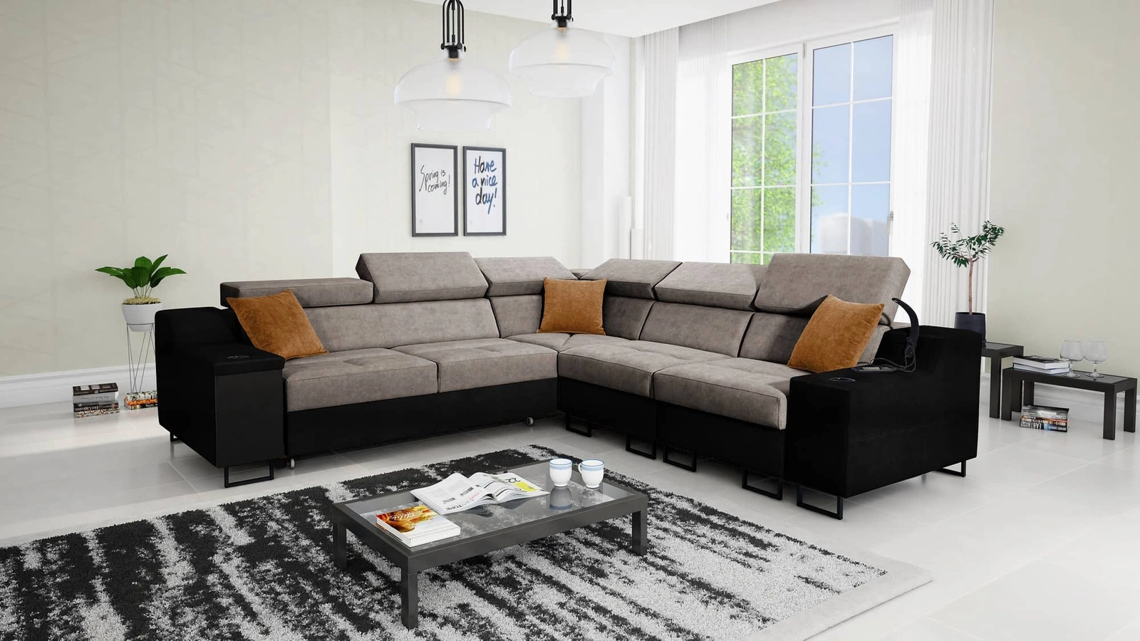 Narożnik Alcamo III w kolorze szary brąz / czarny z regulowanymi zagłówkami to elegancki mebel, który dopasuje się do każdej aranżacji.