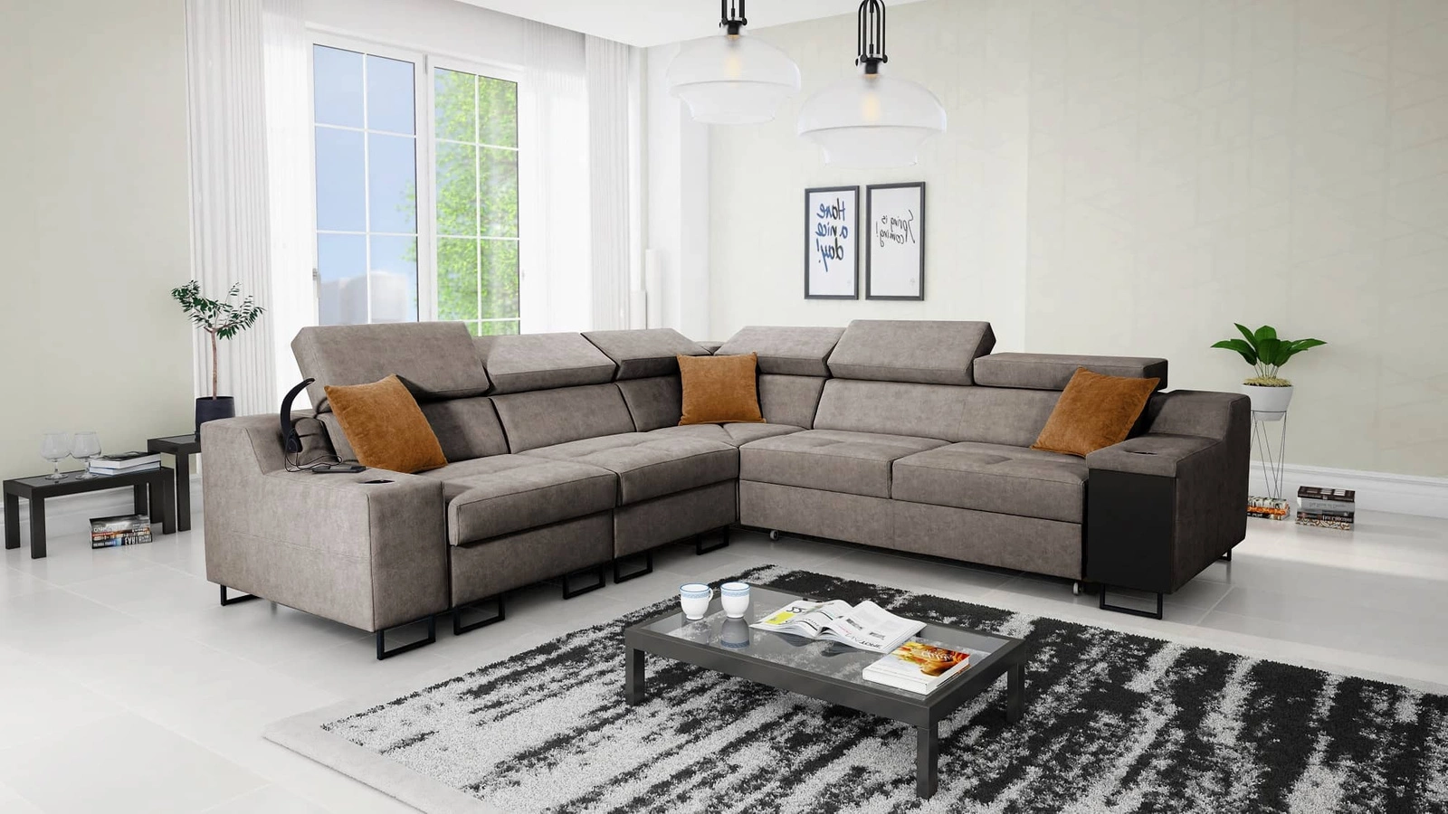 Narożnik Alcamo III w kolorze szary brąz z regulowanymi zagłówkami to elegancki mebel, który dopasuje się do każdej aranżacji.