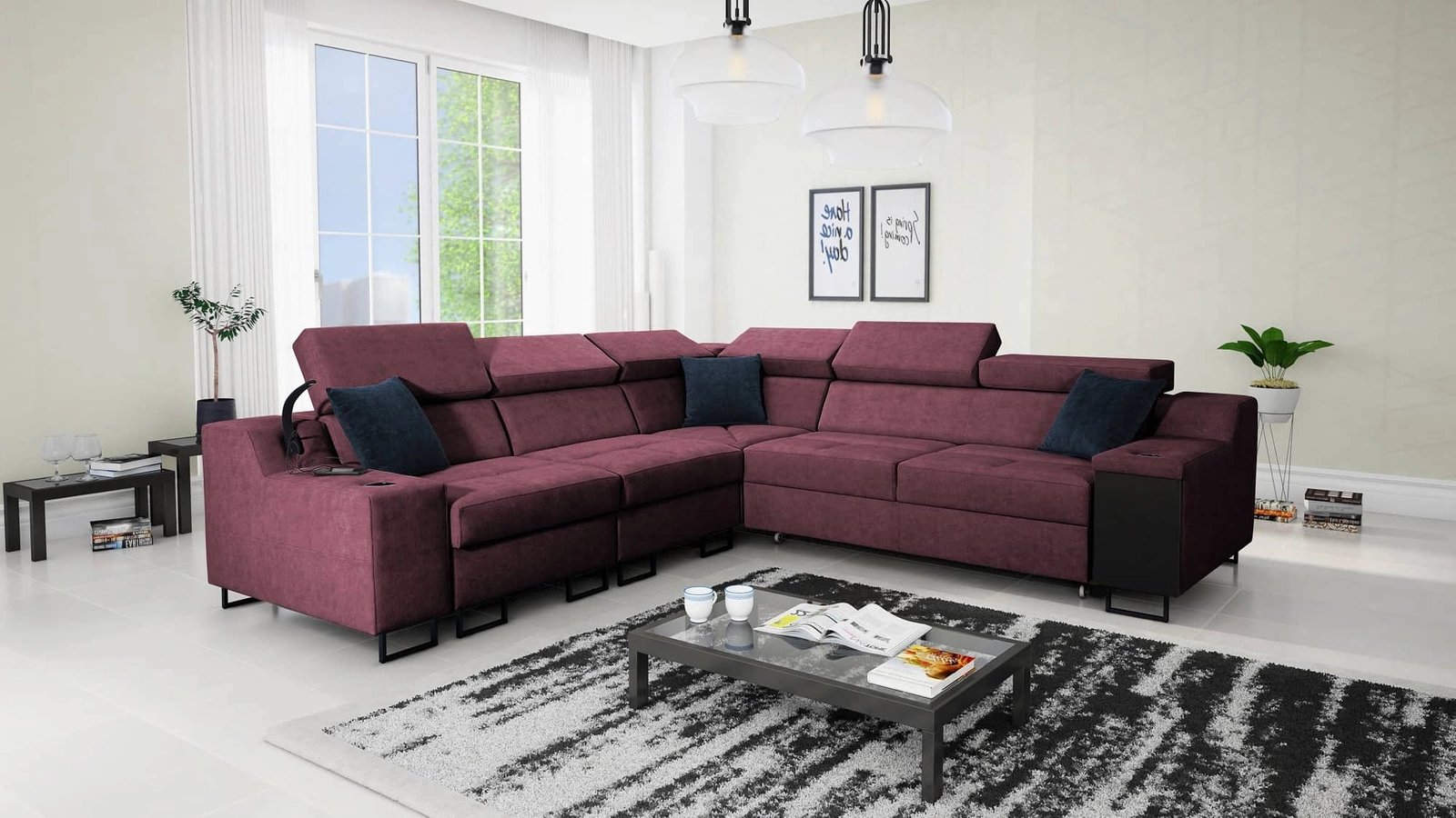 Narożnik Alcamo III w kolorze burgundowym z regulowanymi zagłówkami to elegancki mebel, który dopasuje się do każdej aranżacji.