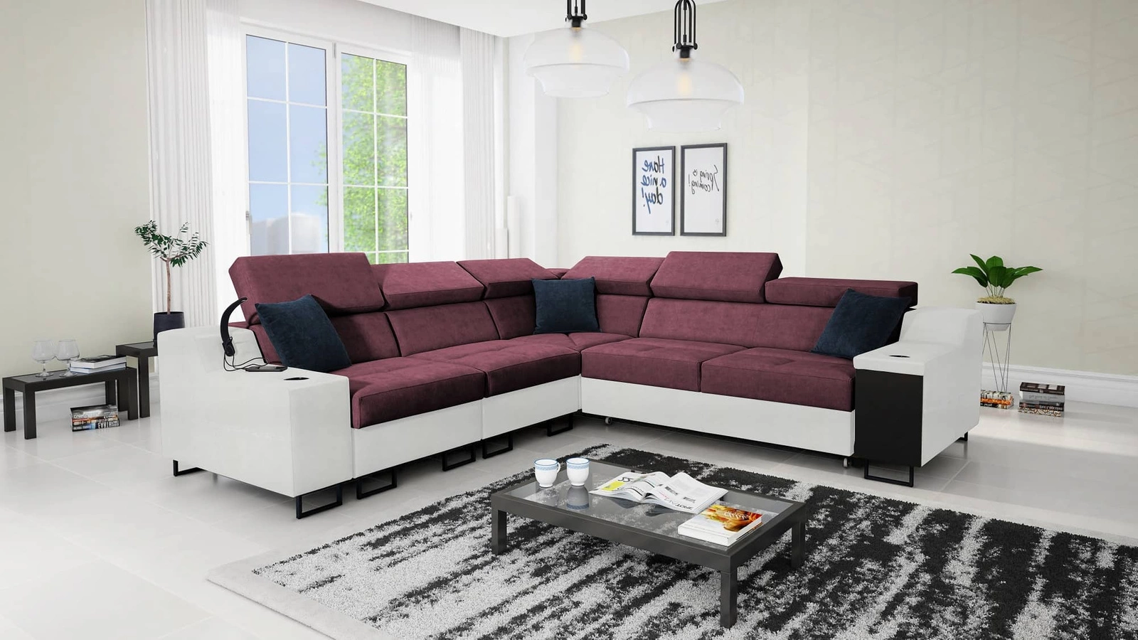 Narożnik Alcamo III w kolorze burgundowy / biały z regulowanymi zagłówkami to elegancki mebel, który dopasuje się do każdej aranżacji.