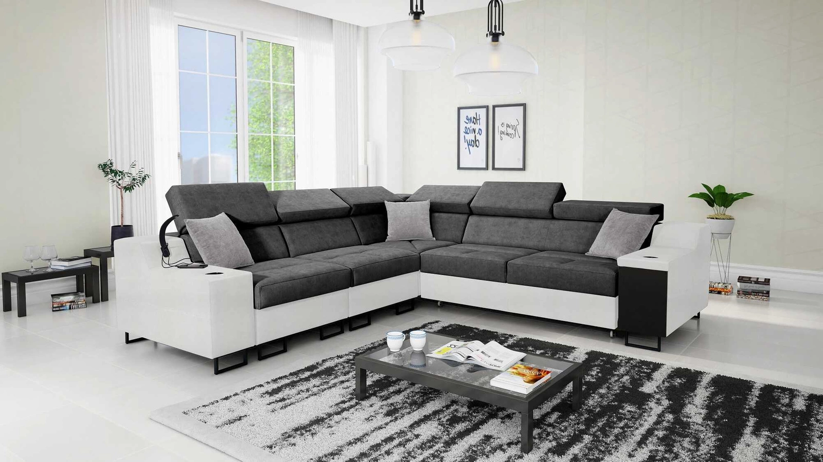Narożnik Alcamo III w kolorze szary / biały z regulowanymi zagłówkami to elegancki mebel, który dopasuje się do każdej aranżacji.