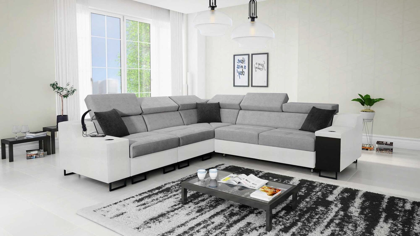 Narożnik Alcamo III w kolorze siwy / biały z regulowanymi zagłówkami to elegancki mebel, który dopasuje się do każdej aranżacji.