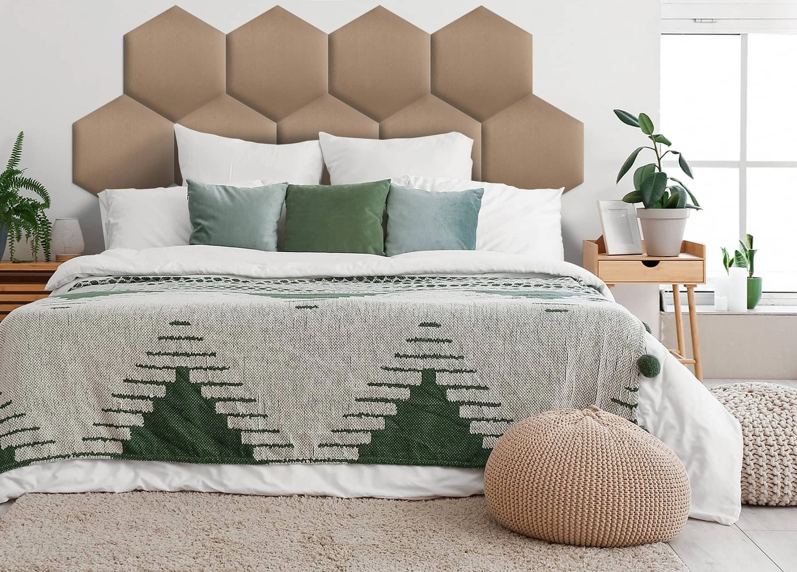 Panel tapicerowany Heksagon w kolorze beżowym to propozycja dekoracji, która zachwyci miłośników nowoczesnych aranżacji.