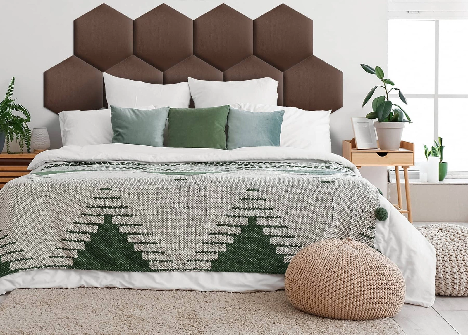 Panel tapicerowany Heksagon w kolorze brązowym to propozycja dekoracji, która zachwyci miłośników nowoczesnych aranżacji.