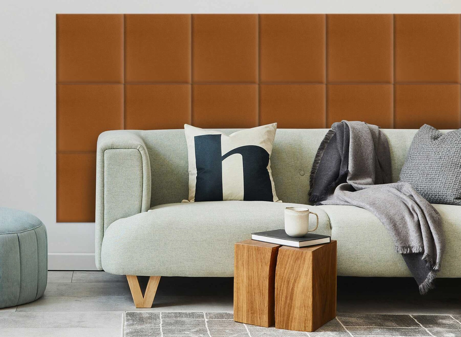 Panel tapicerowany 30x30 cm Quadra w kolorze miodowym to propozycja dekoracji, która zachwyci miłośników nowoczesnych aranżacji.