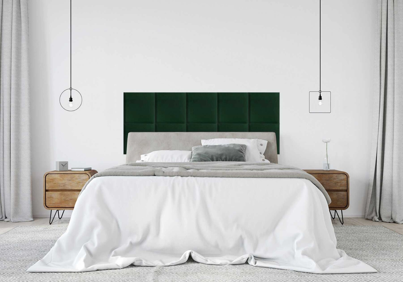 Panel tapicerowany 30x30 cm Quadra w kolorze butelkowa zieleń to propozycja dekoracji, która zachwyci miłośników nowoczesnych aranżacji.