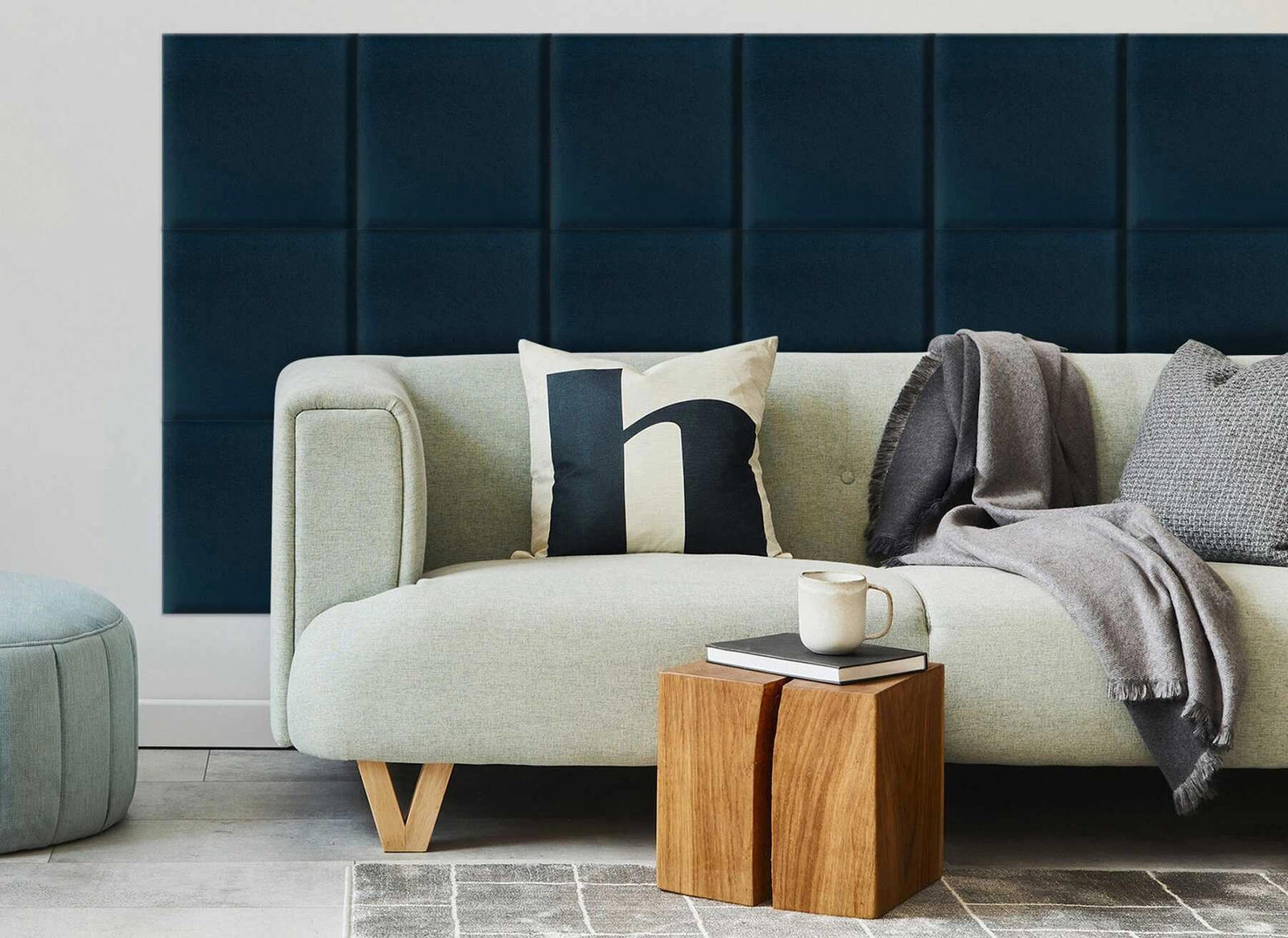 Panel tapicerowany 40x40 cm Quadra w kolorze granatowym to propozycja dekoracji, która zachwyci miłośników nowoczesnych aranżacji.