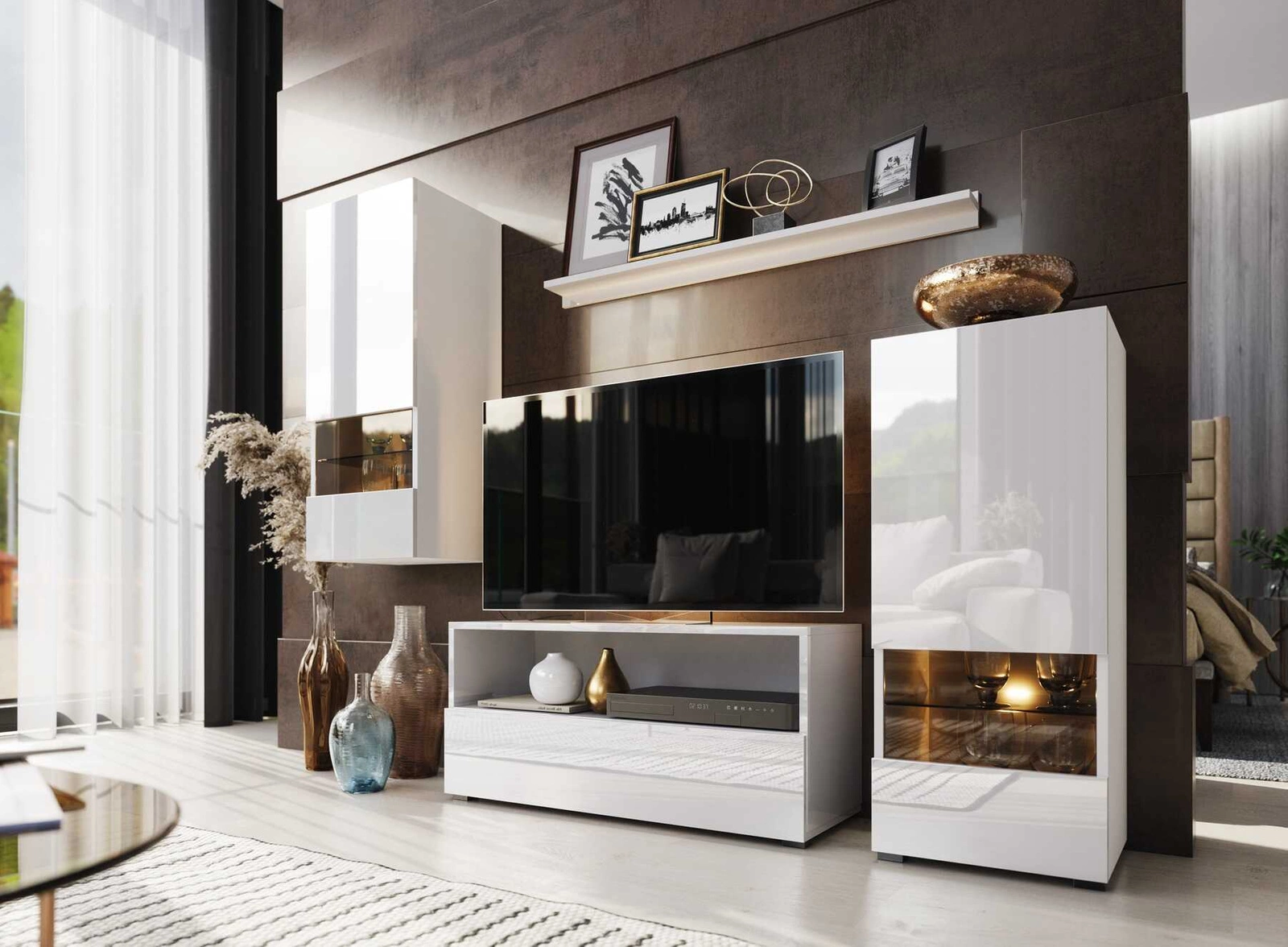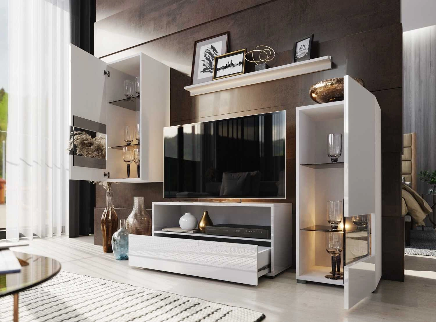Meblościanka Olimpia w kolorze białym to nowoczesny design mebla, który stanie się stylowym wykończeniem wnętrza.