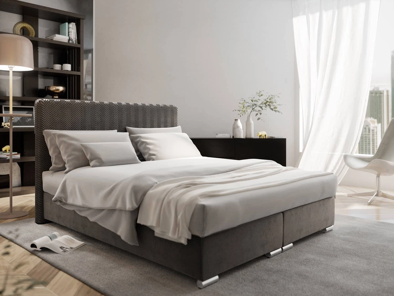 Łóżko kontynentalne Sarona 160x200 w kolorze szarym to idealne rozwiązanie do sypialni urządzonej w stylu nowoczesnym, skandynawskim oraz klasycznym.