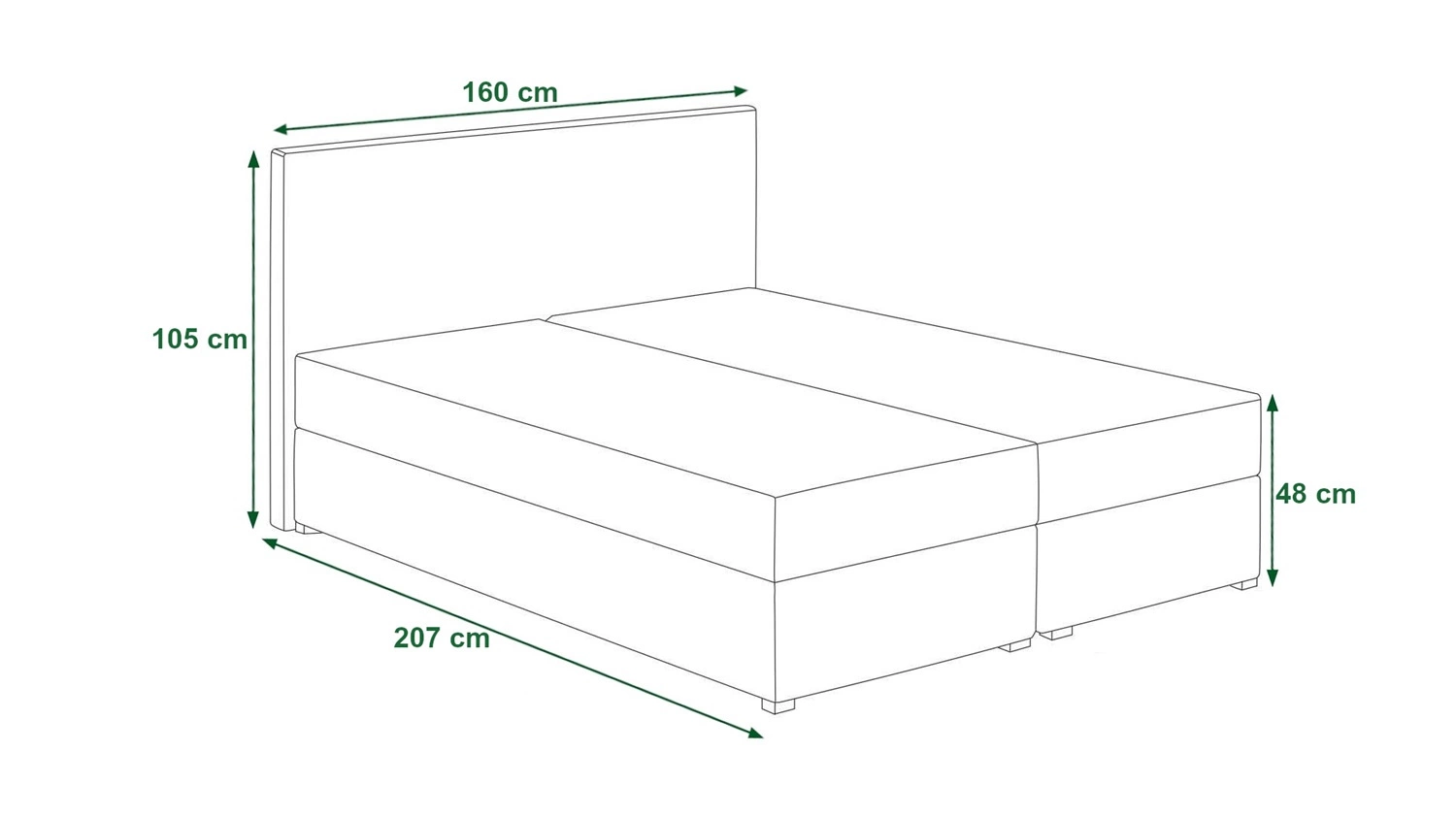 Łóżko wykonane z tkaniny Riviera 91 gwarantuje najwyższy komfort i funkcjonalność podczas codziennego wypoczynku w sypialni. Tkanina ta jest bardzo miękka i przyjemna w dotyku. Zastosowana tkanina charakteryzuje się wysoką odpornością na ścieranie i tarcie oraz jest odporna na działanie światła. Dzięki wszystkim właściwościom użytej tkaniny, łóżko kontynentalne na długo zachowa swój pierwotny wygląd. Konstrukcja łóżka zapewnia dużą stabilność i wygodę użytkowania. Rama łóżka kontynentalnego jest wykonana z drewna oraz płyty meblowej. Przeszycia na wezgłowiu przyciągają wzrok i nadają łóżku szczególnego charakteru.