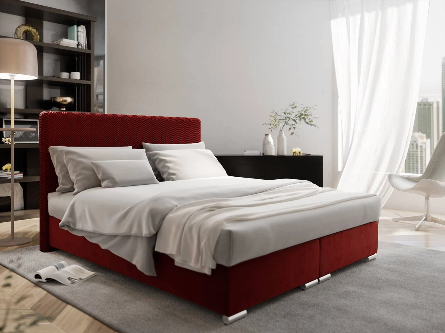 Łóżko kontynentalne Sarona 180x200 w kolorze bordowym to idealne rozwiązanie do sypialni urządzonej w stylu nowoczesnym, skandynawskim oraz klasycznym.