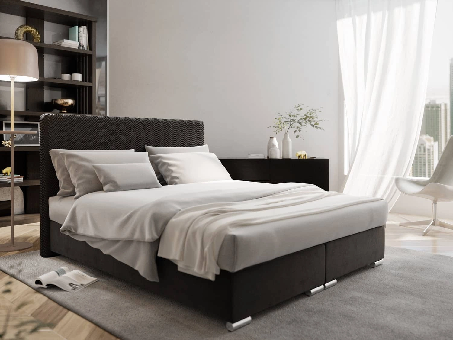 Łóżko kontynentalne Sarona 180x200 w kolorze czarnym to idealne rozwiązanie do sypialni urządzonej w stylu nowoczesnym, skandynawskim oraz klasycznym.