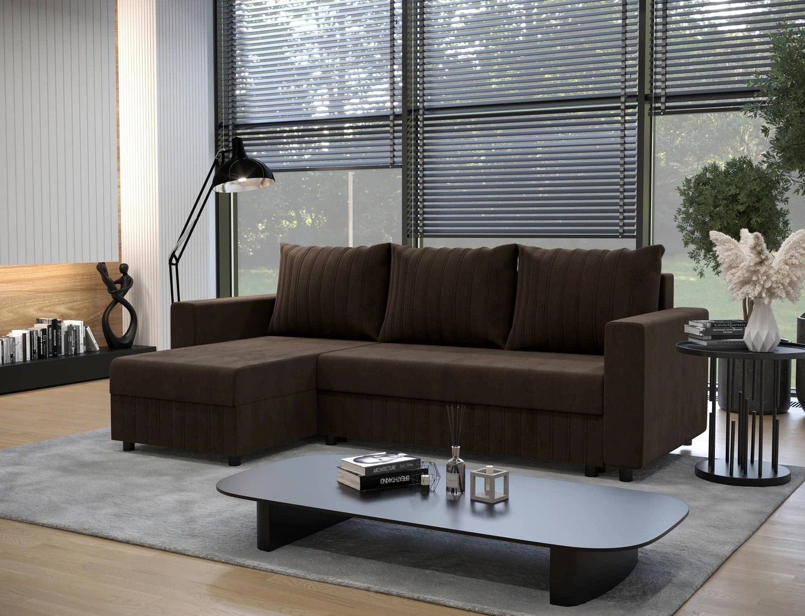 Narożnik Pasco w kolorze brązowym to minimalistyczna bryła, która świetnie dopasuje się do każdej aranżacji w Twoim domu.