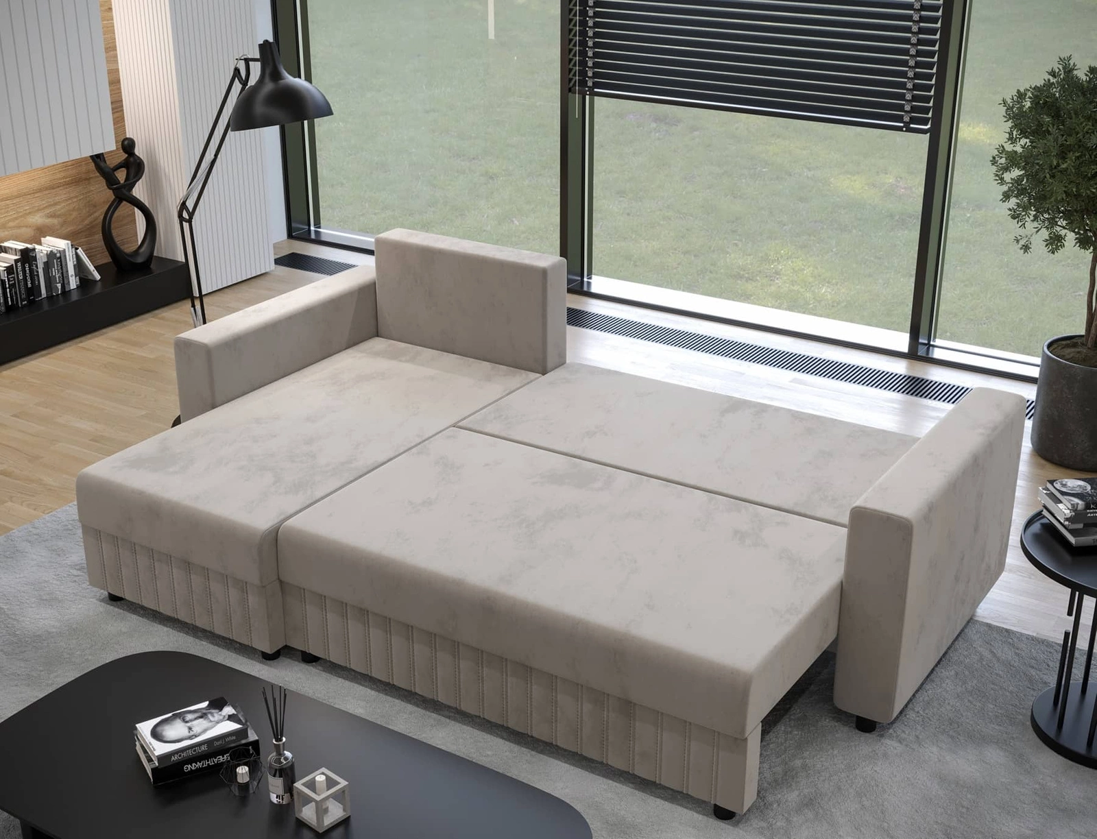 Szczegóły nowoczesnego narożnika z funkcją spania Pasco