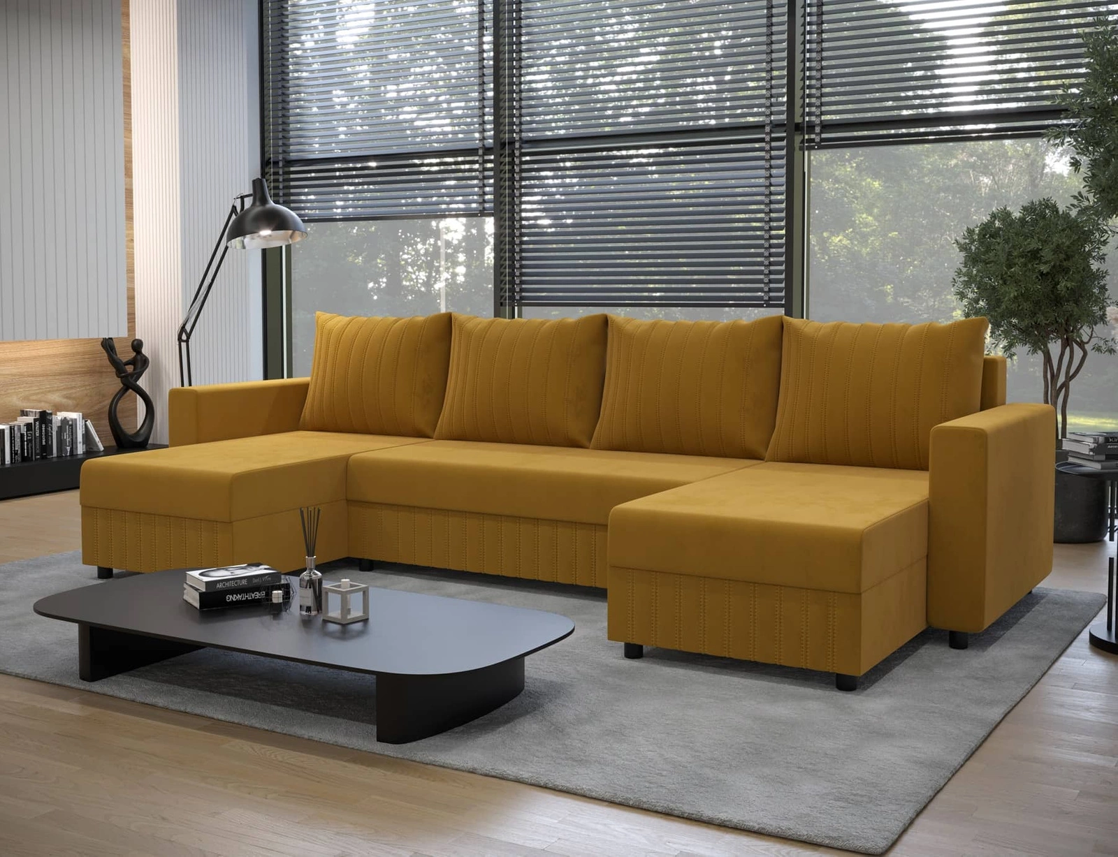Narożnik Pasco U w kolorze miodowym to minimalistyczna bryła, która świetnie dopasuje się do każdej aranżacji w Twoim domu.