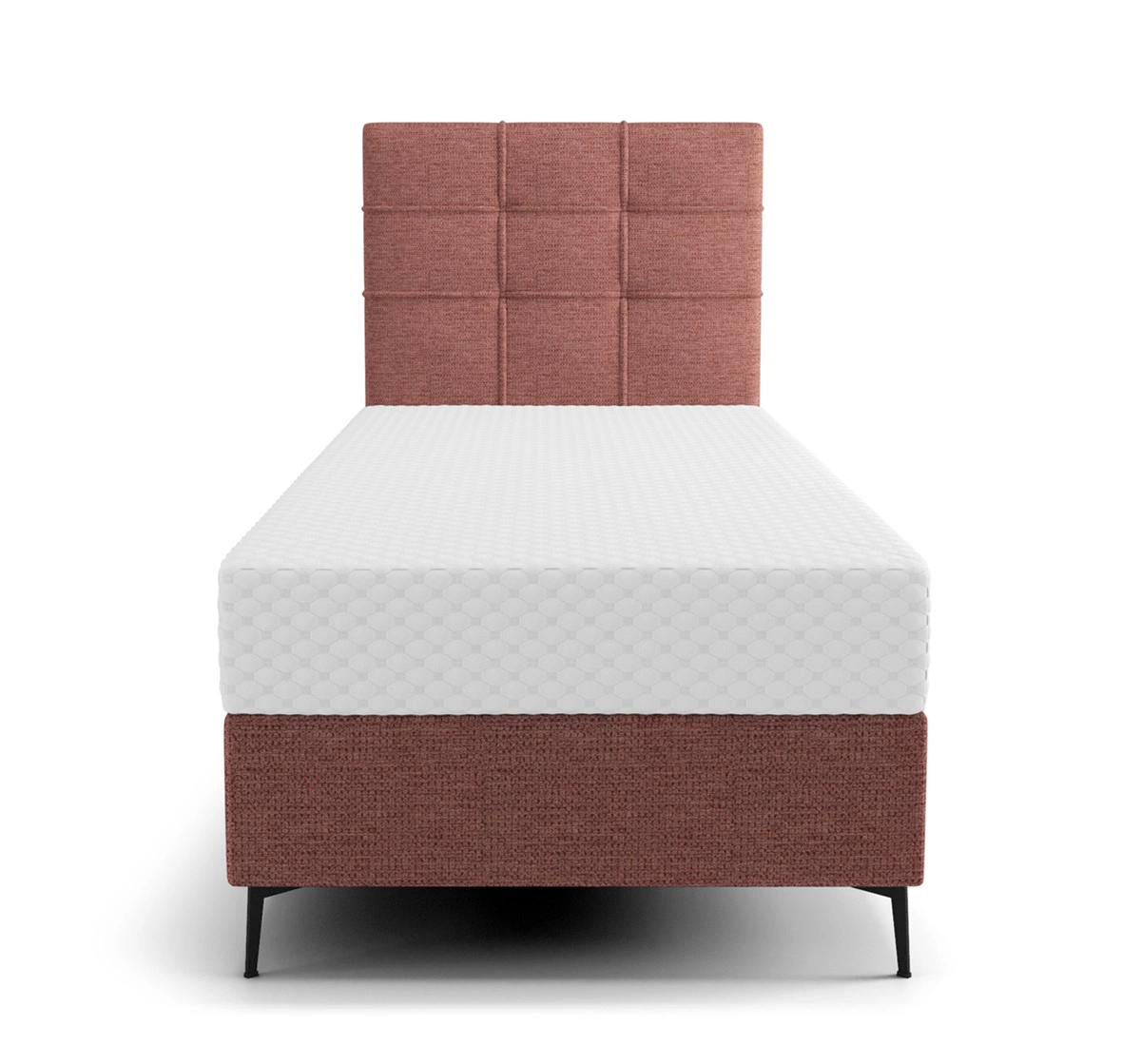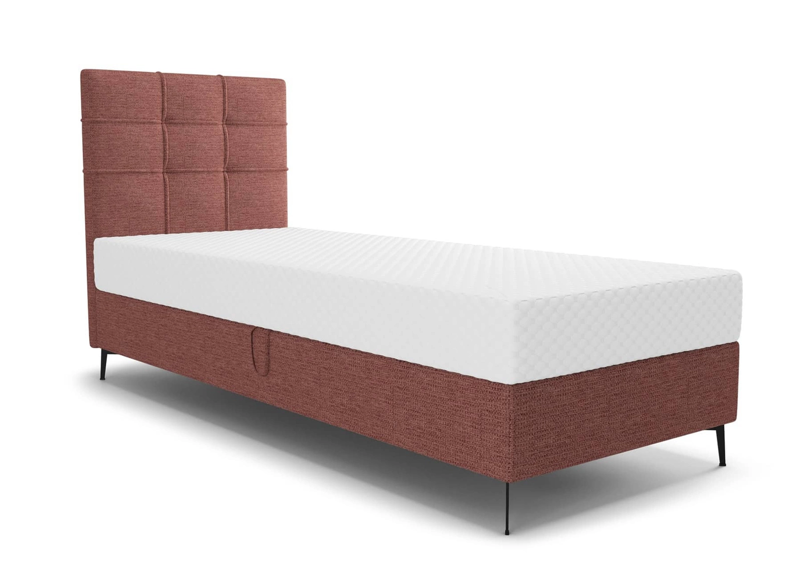 Łóżko kontynentalne Irvine 80x200 w kolorze ceglastym to idealny wybór do każdej sypialni lub pokoju młodzieżowego.